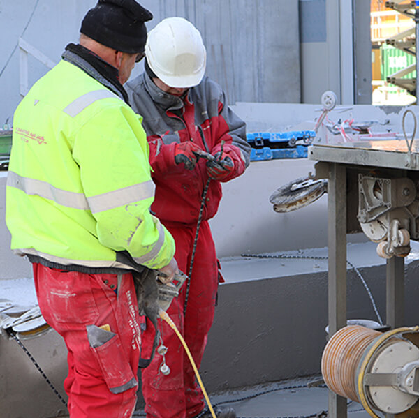 Vi er kendt for at være på pletten og udføre et pænt stykke arbejde. Vi har en stabil stab af medarbejdere med flerårig ekspertise indenfor diamantboring, diamantskæring og wireskæring.